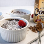 - Pour into ramekins and bake for 25 minutes or until a toothpick inserted in the center comes out clean.Â