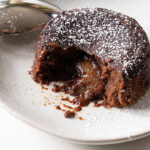 - Bake until the sides are set but the middle is still jiggly (about 10 minutes). Let cool for 1-2 minutes before carefully picking-up ramekin with an oven mitt and placing an inverted plate on top. Turn over ramekin and plate, the lava cake should slide cleanly out.