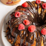 This indulgent coffee cake layers a rich, buttery cake with a smooth cream cheese and raspberry jam filling, finished with chocolate chunks for the perfect sweet companion to your morning or afternoon coffee.